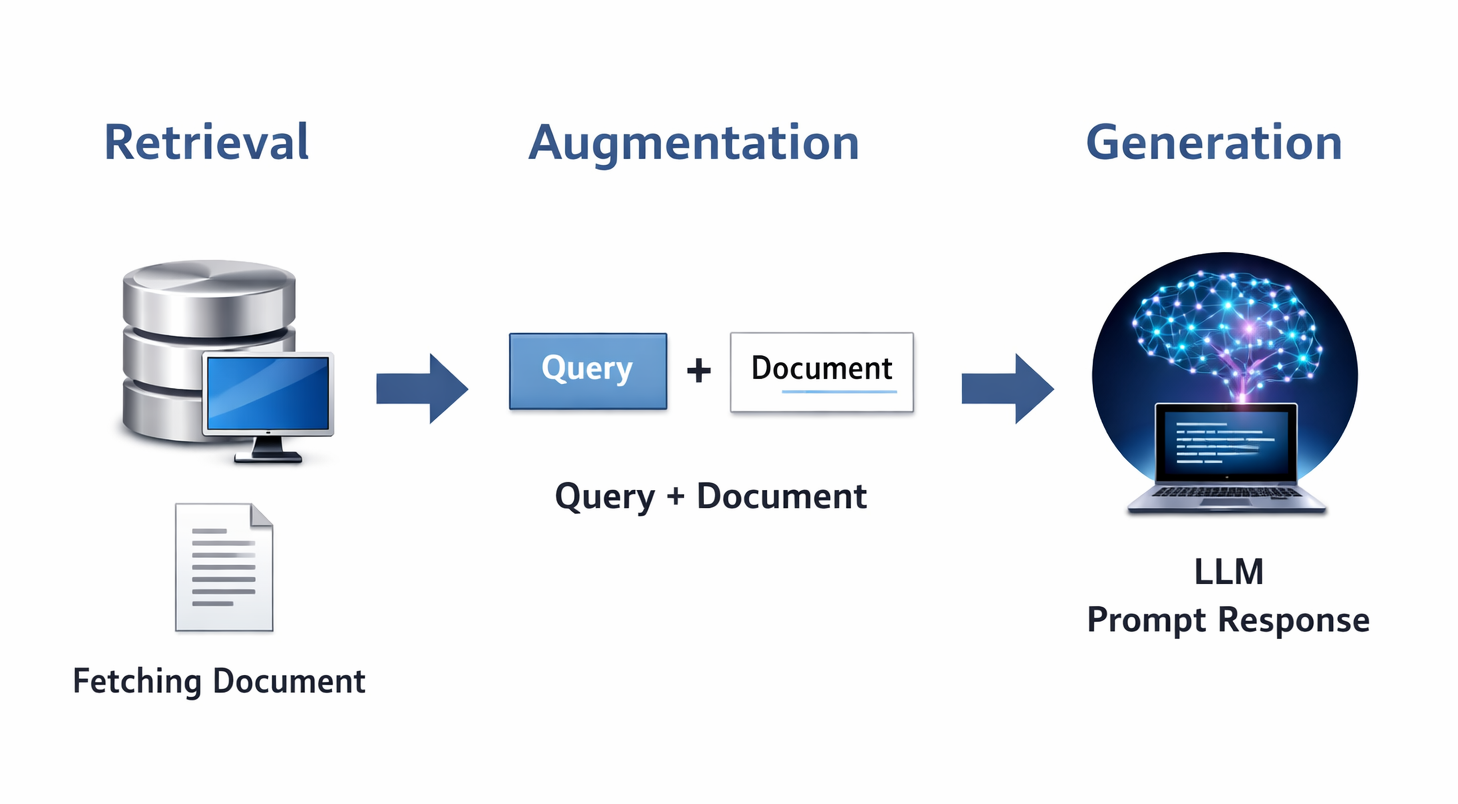 At its core, RAG is simple. Instead of asking a model to answer from memory, you first retrieve relevant external information, then pass that into the prompt so it can reason over it directly. The retrieval step grounds the model in reality. The generation step turns that